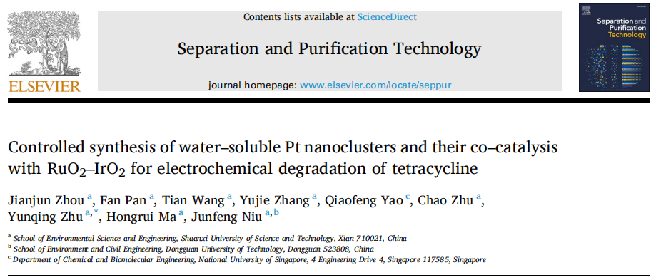 【成果3】Pt纳米团簇的可控制备与RuO2-IrO2共同电催化降解水中四环素