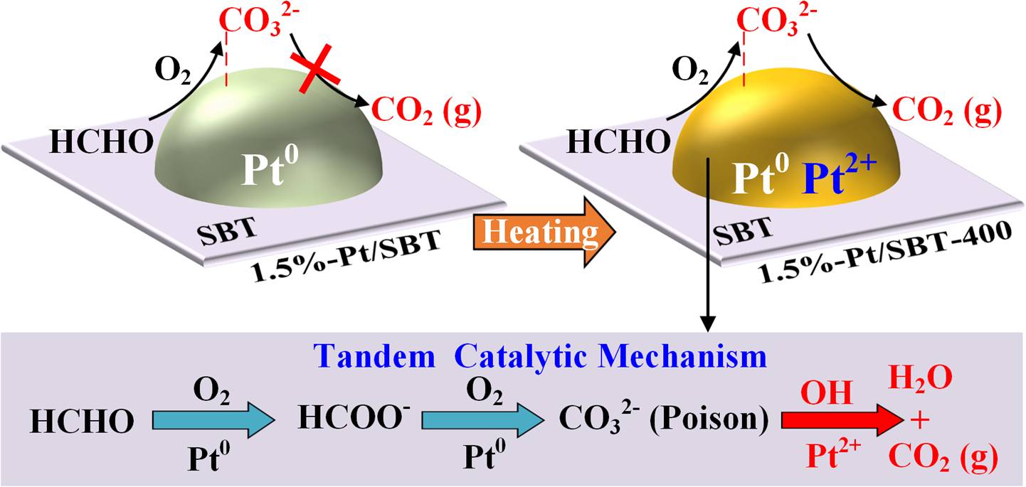 李英宣教授与美国德州农工大学Virender K. Sharma教授合作,实现了超小Pt纳米粒子内催化活性位点的精确调控,使材料降解HCHO活性提高近4倍。相关成果以“Active Site-Directed Tandem Catalysis on Single Platinum Nanoparticles for Efficient and Stable Oxidation of Formaldehyde at Room Temperature”为题发表在环境领域的顶级期刊《Environmental Science& Technology》(Environ. Sci. Technol. 2019, 53, 3610−3619)上(IF=6.653)。