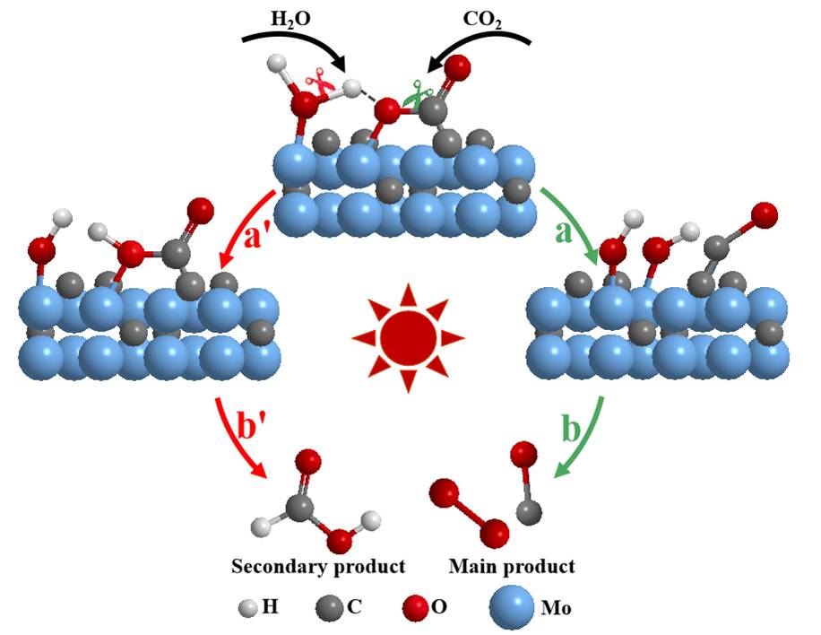赵杰副教授将黑色b-Mo2C纳米线用于光催化CO2还原时,发现其催化性能显著依赖于表面温度,与传统热催化相比,b-Mo2C纳米线在光驱动热催化中的催化稳定性明显提高。该工作为光驱动热催化CO2转化提供了一个较好的催化剂研究平台。相关成果以“Light-driven thermocatalytic CO2reduction over surface-passivated β-Mo2C nanowires: enhanced catalytic stability by light”为题发表在国际权威期刊Chemical Communications上(http://dx.doi.org/10.1039/C9CC01479A)(IF=6.29)。