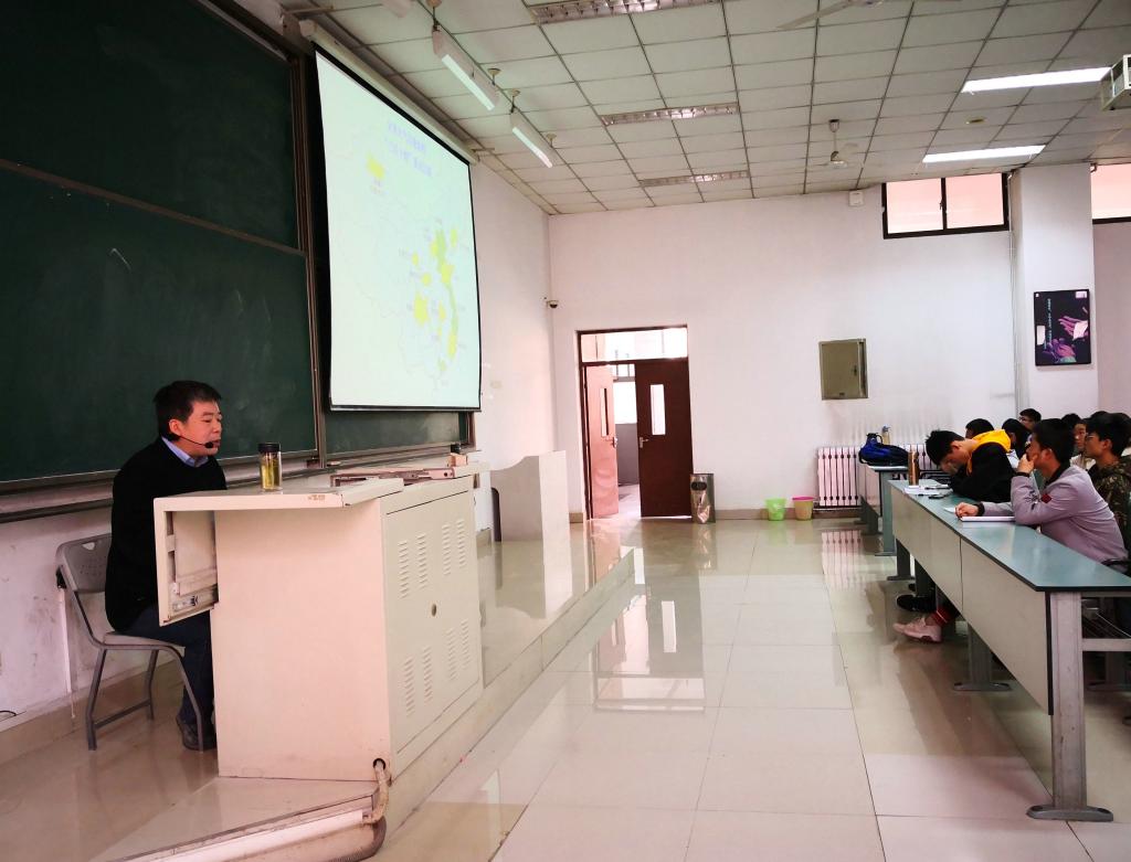 蒋楠以“西安市环境空气质量现状与面临问题及对策”为题为现场师生介绍了西安市环境空气质量监测发展历程和空气污染主要特点,并结合本市的地理地形及气象特点分析了其对空气质量的影响,提出作为环境人,我们应该对大气污染问题有客观认识,要积极利用所学知识,在服务当地经济绿色发展、创新企业生产方式、加快企业转型等方面发挥作用。