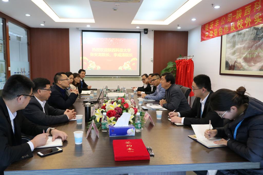 1月22日,陕西科技大学--碧沃丰集团产学研合作及校外实践基地在碧沃丰总部隆重揭牌。我院副院长张安龙、李成涛,碧沃丰集团总裁范德朋、碧沃丰山东公司负责人及管理层出席了揭牌仪式。
