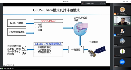 报告首先介绍了研究背景,提高SO2、NO2和O3污染浓度的模拟和预测能力是我国环保部门的重要需求,及时准确地提供高SO2和NOx污染源排放清单是模拟和预测这些大气污染的关键因素之一。虽然常用的自下而上方法,即基于汇编排放因子和活动率等资料,被广泛应用于编制排放清单,但通常会有至少1-2年的时间滞后性。卫星可提供准实时的大气污染物浓度观测数据,包含污染源排放的信息。因此,基于GEOS-Chem伴随模式和逆问题理论,通过同化卫星观测的大气SO2和NO2浓度数据,并融合夜间灯光卫星观测数据,将污染物排放清单降尺度到细分辨率,及时准确地反演了中国SO2和NOx排放清单,结果表明,基于卫星观测反演的排放清单能够明显提高大气污染的模拟和预测能力。