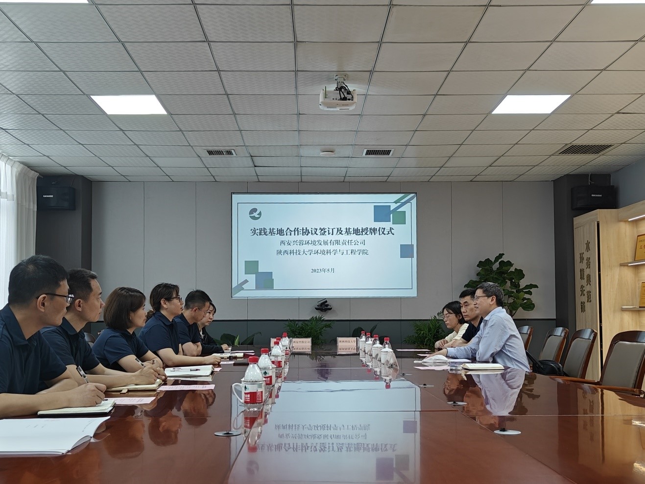 王家宏简要介绍了金沙集团1862cc成色发展沿革、学科方向、专业设置、人才培养等教育教学基本情况,并就学院近年来在科技创新、社会服务、人才培养等方面取得的成效与参会人员深入交流,对西安兴蓉公司长期支持我院人才培养工作表示感谢,希望以实践基地建设为契机,进一步深化人才培养和实践教学改革,优势互补,推进双方“产学研用”合作,助力生态环境保护与治理。吴亚平简要介绍了公司发展历史、业务开展和社会服务等方面的基本情况,对双方在前期良好合作基础上进一步共建校外科研实践基地表示热烈欢迎。