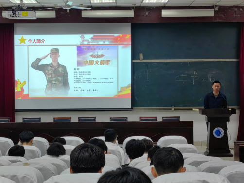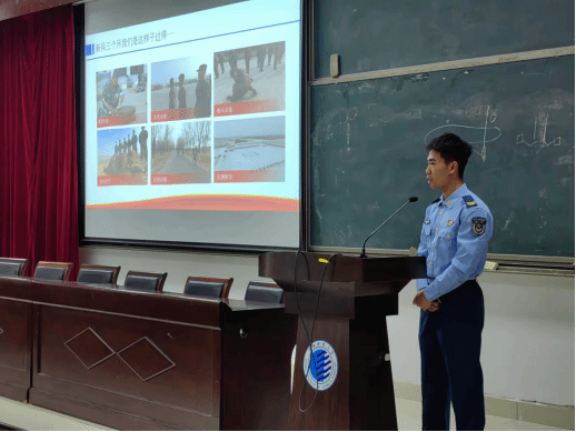 会议第三项,我院邀请到两位退伍复学学生——邓兴茂、吴彬同志进行军营生活分享及征兵宣传。他们以自己的亲身参军经历向同学们展示了新时代科大青年的责任担当,展示出国防和军队现代化的建设成就,以及新时代革命军人保家卫国的使命担当,极大点燃激发了我院学生对参军报国的激情和向往,“迷彩飞扬忠心炽,青春许国正当时”,更加坚定了环境学子应征入伍的决心。