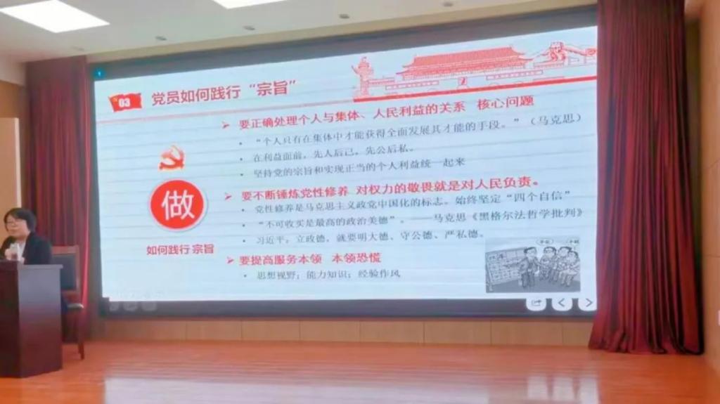 党课的第一部分从三大谜团说起,主要为大家讲解了中国共产党的性质,并强调要进一步深化对党的性质宗旨的认识,始终保持马克思主义政党的鲜明本色。