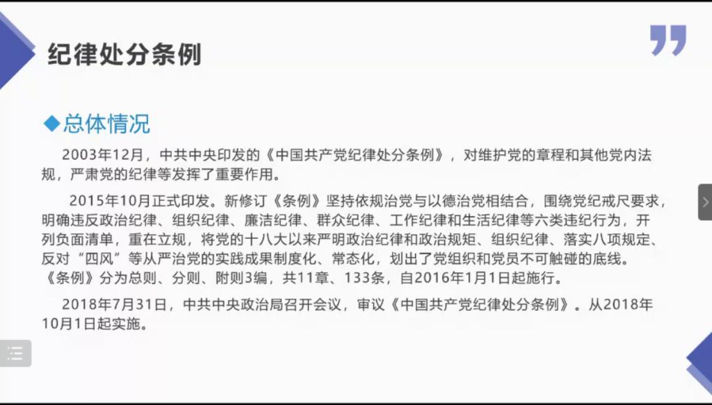 2022年5月16日19:30,金沙集团1862cc成色第51期积极分子党课培训第五课在腾讯会议上进行。这次授课的老师是校纪委的靳凯老师,授课的主题是——党的纪律建设和作风建设。