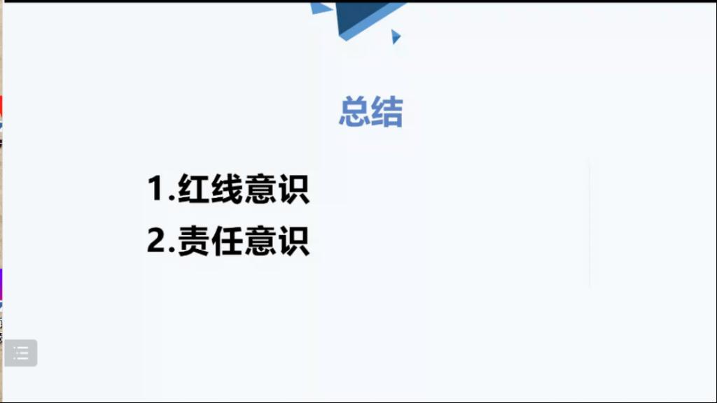 最后,老师讲到我们应当强化“红线”意识,落实“责任”意识。共产党员永远是人民的公仆,既不图个人名利,更要真心为党和人民谋利做事,这就需要守纪律、讲规矩,做到一身正气两袖清风,丝毫不能损害群众利益,工作要尽职尽责,生活要拒绝腐化奢侈。做合格共产党员,做一名优秀的人民公仆,必须时刻把人民装在心中,将“红线”摆在面前。