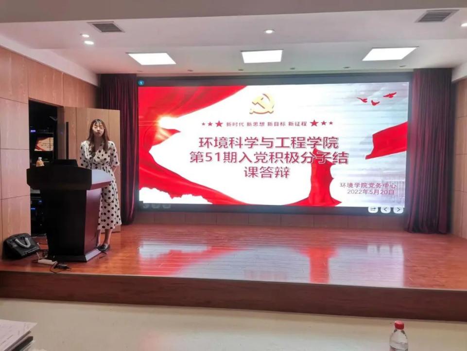 2022年5月20日,金沙集团1862cc成色于1b312报告厅召开第51期入党积极分子实践活动答辩大会。本次大会由组织部孟思婷主持,金沙集团1862cc成色党建工作负责人李丹清老师、各部部长担任评委。