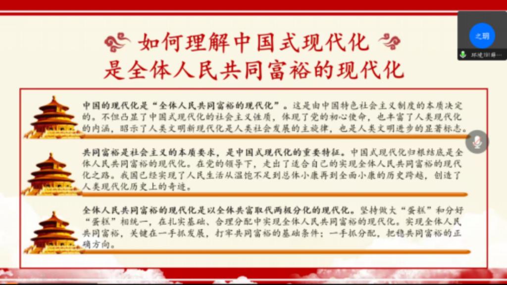 关于生态环保方面,周园同志分享了在协同推进降碳、减污、扩绿、增长方面,我们要必须立足我国富煤,贫油,少气的基本国情;必须处理好4对关系,分别是发展和减排的关系、整体和局部的关系、长远目标和短期目标的关系、政府和市场的关系;必须坚持系统观念,要做到一体谋划、一体布局、一体推进、一体考核。