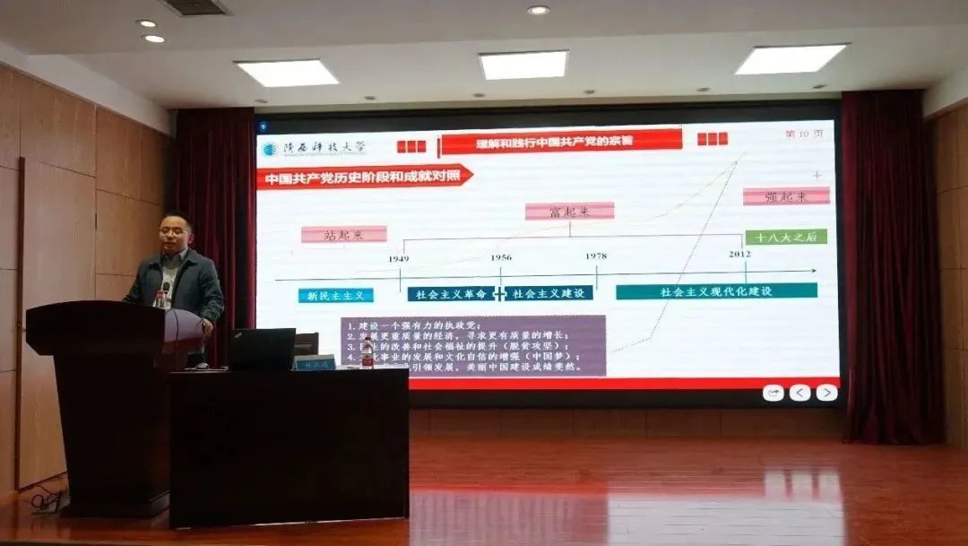 祁老师还从中国共产党的各个历史阶段的诉求进行解读,在不同的社会发展阶段,中国共产党的发展任务和发展目标是动态进步的,但其根本宗旨始终是一以贯通,始终不变的。在中国共产党带领人民,从站起来到富起来最后强起来的各个阶段,中国共产党人始终牢记“为人民服务”的初心使命,这是中国共产党坚守根本宗旨。