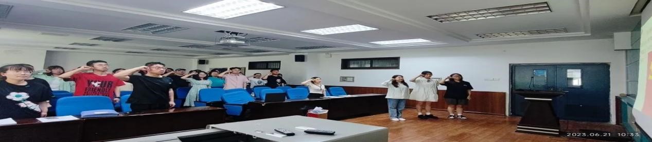 最后,张浩同志带领与会所有党员进行宣誓,每位同志都用发自内心的声音抒发对党忠诚的决心,大家接收了一次身心的特殊洗礼。此次大会,旨在培养优秀党员,为党组织输入新鲜血液,为我院学生树立榜样,让更多的新党员融入党,在党的带领下不断进步,更好地为大家服务。同时,也有助于广大学生党员铭记入党誓词,增强党员自豪感、荣誉感,在日后的学习生活中自觉担负起光荣的责任和使命,为党的伟大事业做出应有的贡献。