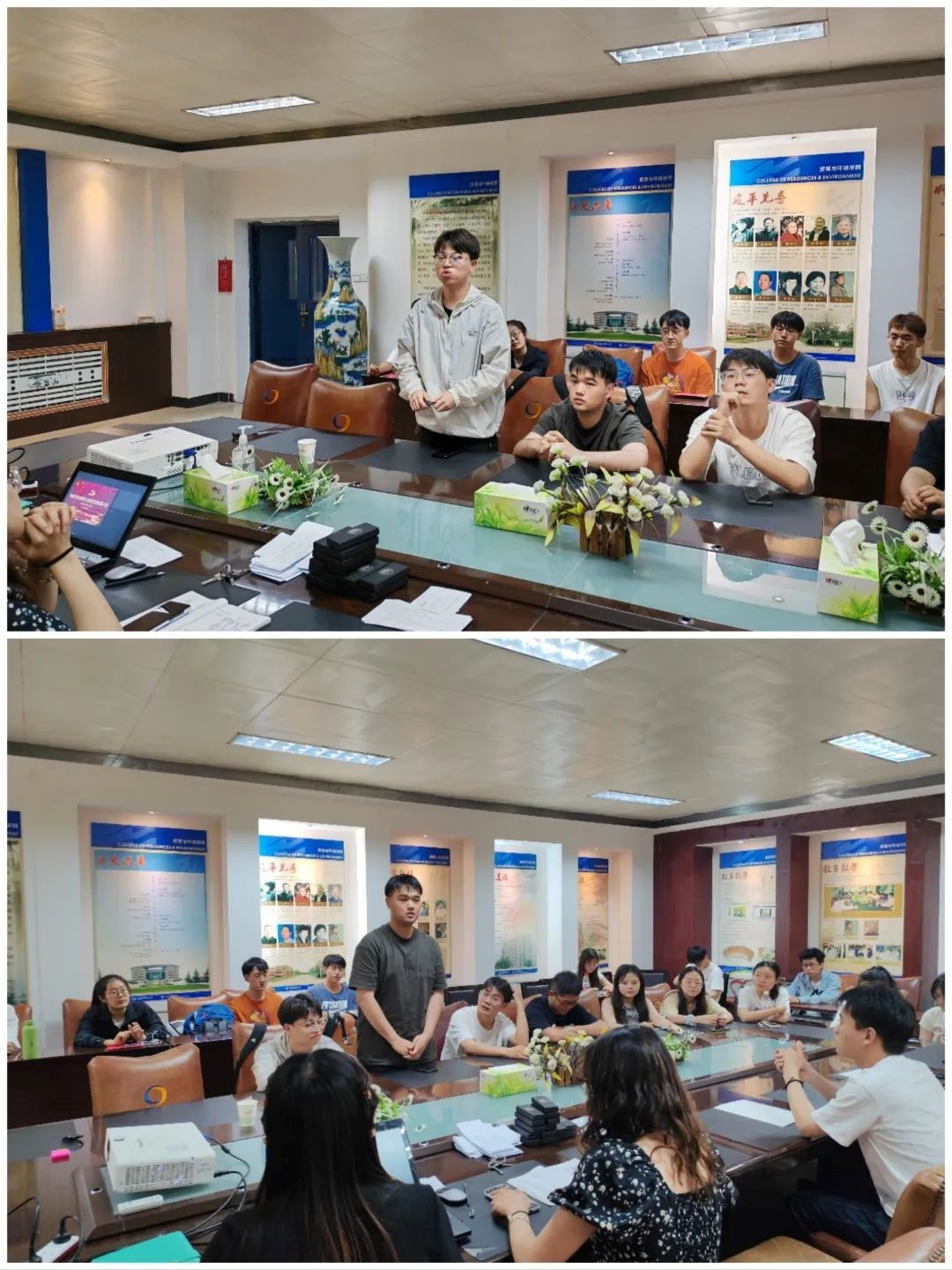 金沙集团1862cc成色本科第一党支部于2023年6月25日17:30在资环楼1B312召开预备党员接收大会暨毕业生送别大会。本次会议由支部组织委员宋白莎主持召开,本次会议内容主要为预备党员接收大会、支部换届大会及为毕业生党员送祝福三部分。