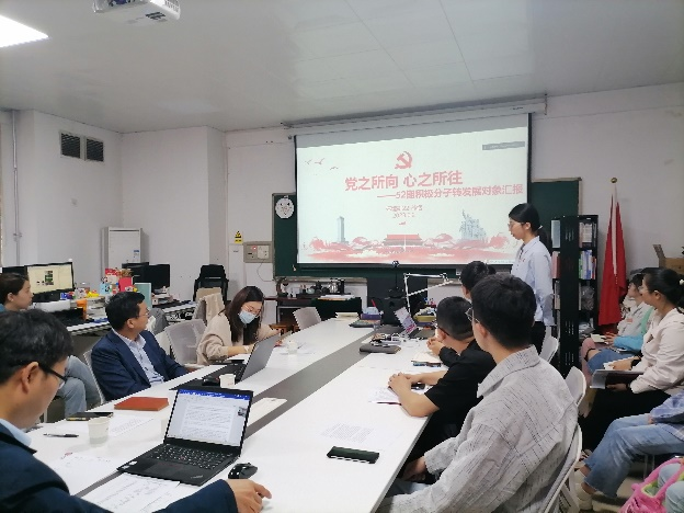 会议第三项,讨论积极分子确定为发展对象事宜。孙恬、王思源两位积极分子分别从个人情况、入党动机、对党的理解和认识以及考察期的表现进行汇报,结合自身实际情况表达了加入中国共产党的决心和强烈愿望。李成涛同志就“如何将论文写到祖国大地上”与积极分子进行充分交流。接着,支部党员根据积极分子培养考察期间的表现和汇报内容进行充分讨论,并采取无记名投票的方式进行了选举。