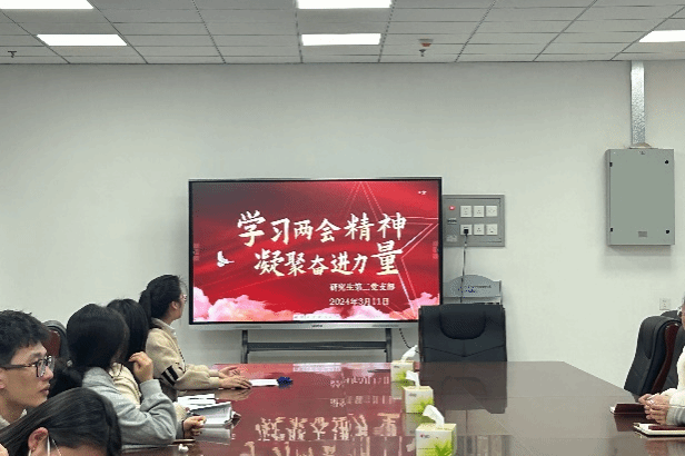 阳春三月,全国两会在人民的殷切希望中如约而至。为深入学习贯彻“两会”精神,全方位、多角度把握两会动态,提高支部党员觉悟,强化新时代青年的使命与担当,金沙集团1862cc成色研究生第二党支部于2024年3月11日在新实训楼C718开展“学习两会精神,凝聚奋进力量”主题党日活动。由支部副书记带领大家学习十四届全国人大二次会议上政府工作报告。
