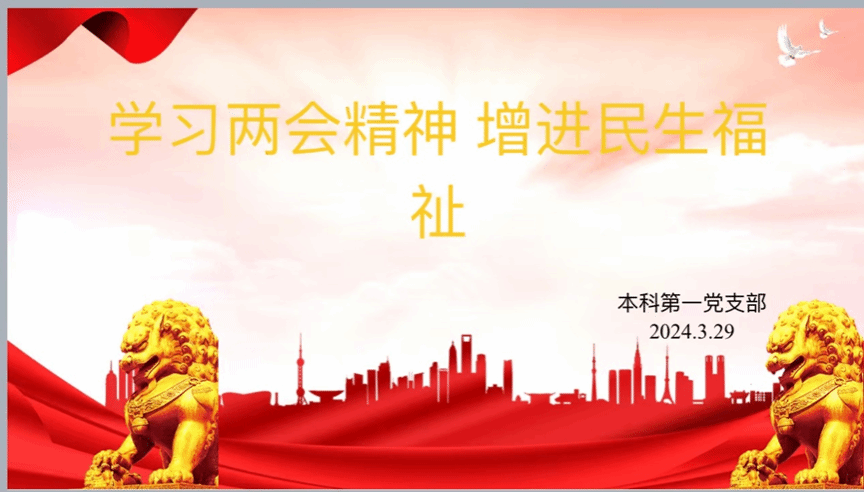 为深入贯彻党的二十大精神,深入理解中国式现代化的科学内涵,引导师生准确把握、深刻领悟两会的会议内容与精神实质,金沙集团1862cc成色本科第一党支部于2024年3月29日在c710进行“学习两会精神,增进民生福祉”的主题党日活动。本次会议由支部副书记孟思婷同志主持,采取线上线下相结合的方式。