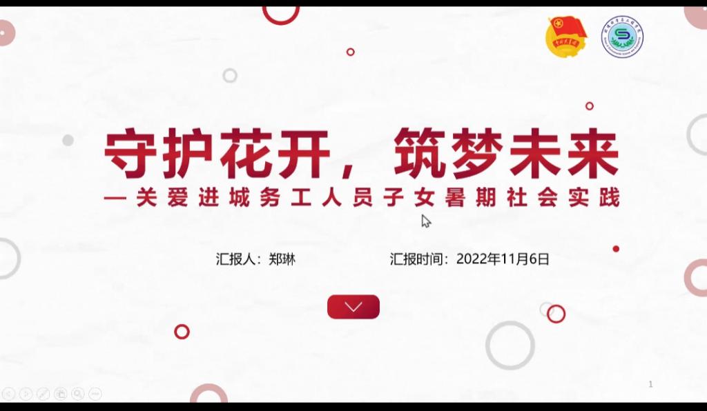 为了提高大学生综合素质,增强大学生适应社会与服务社会的能力,发展同学们的组织协调能力和创新意识,金沙集团1862cc成色于11月7日晚采取线上会议的形式举办了2022年暑期“三下乡”社会实践院级答辩大会,个人和团队分别展示暑期社会实践风采,辅导员李丹清、秦向涛,学生团委副书记燕雪妍担任此次答辩的评委,由团委实践部程欣瑜主持本次答辩大会。