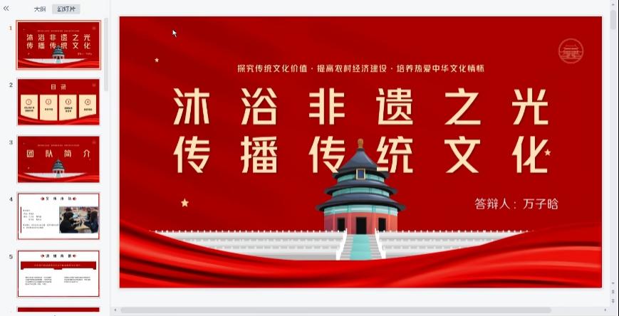 环工212王伟平助力推动甘肃特色农产品“啤特果”建立地区品牌,为提高经济水平的乡村振兴机制提出了自己的建议;环工202张聆玲着重了解了非遗文化中的传拓技艺,通过许多短视频平台传播了这项非遗文化。