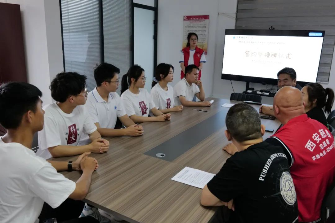 2023年5月14日,金沙集团1862cc成色三叶草青年志愿者服务团与西安市未央区张千户社区建立志愿服务基地并签署志愿服务协议。
