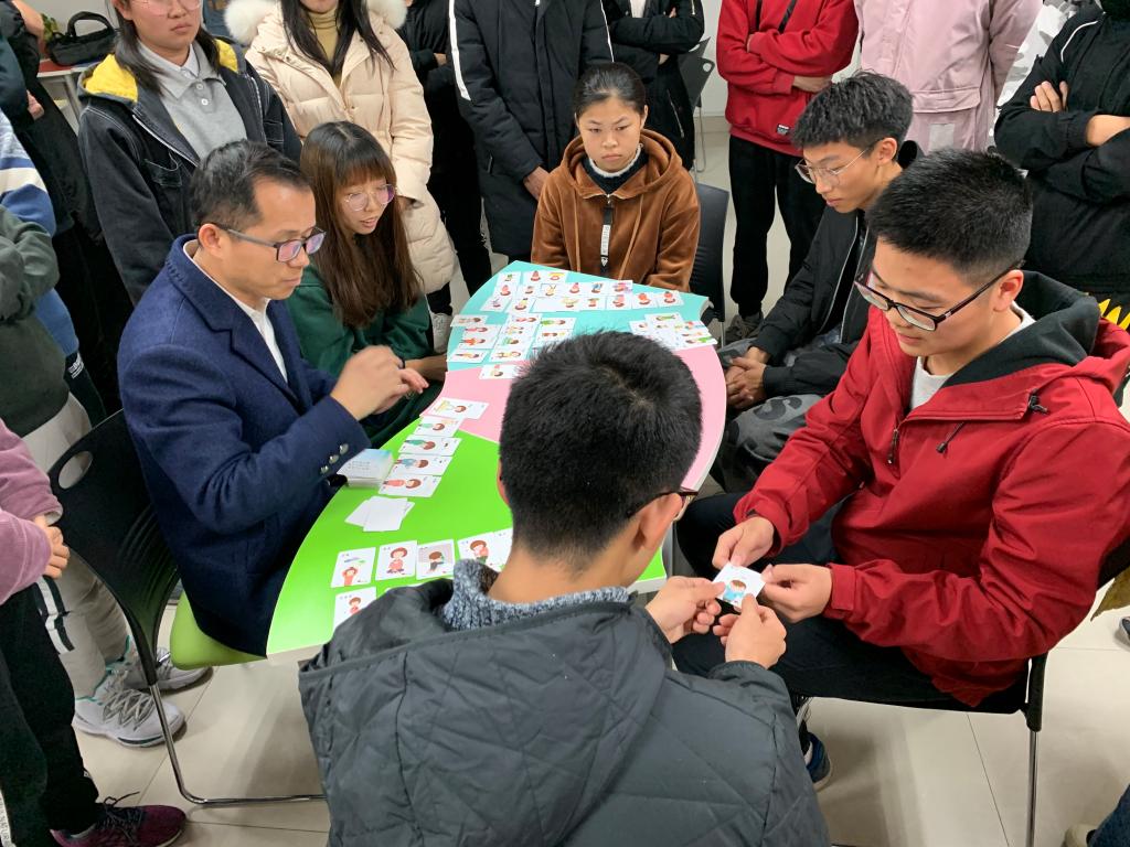 第二阶段,胡亚华老师随机抽选了5名舍长后,向在场同学亲自演示了“宿舍情愿卡”团辅活动的具体操作步骤,并带领在场的同学们在观摩团辅各个环节的过程中感受宿舍人际交流、心理关注的积极作用。通过活动中具体环节,胡老师也向在场同学们讲解了大学生常见心理问题以及关注和沟通方式技巧。
