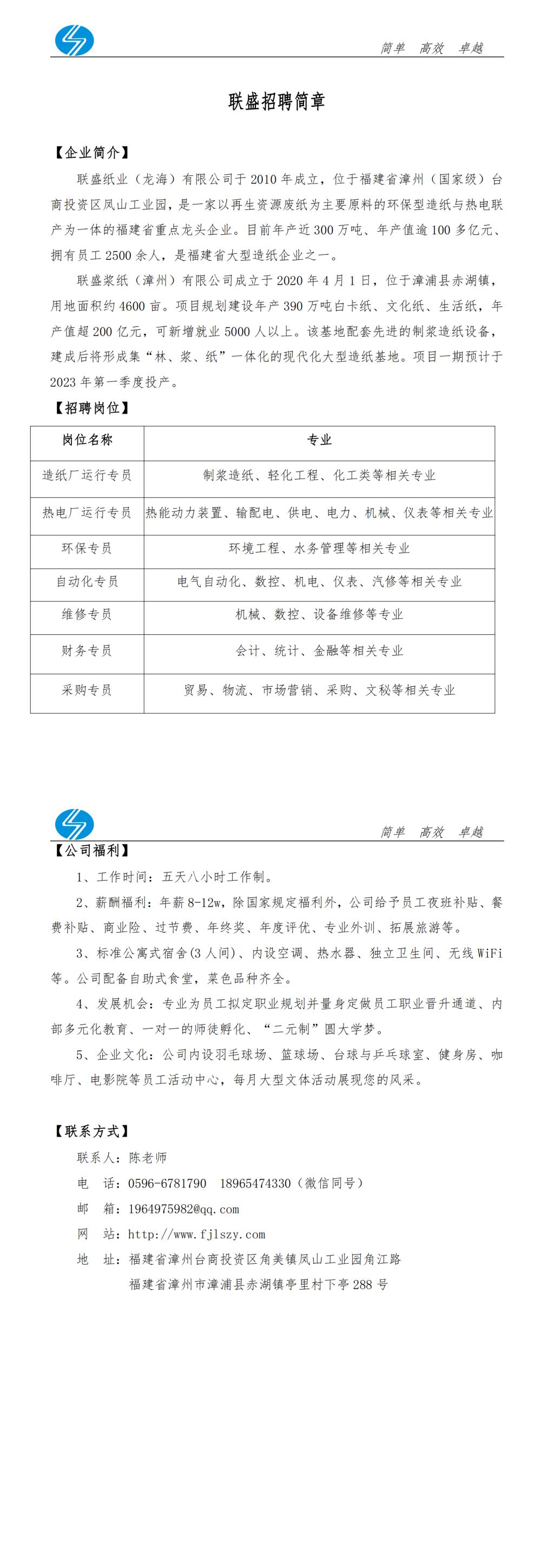联盛纸业(龙海)有限公司2023届校园招聘简章